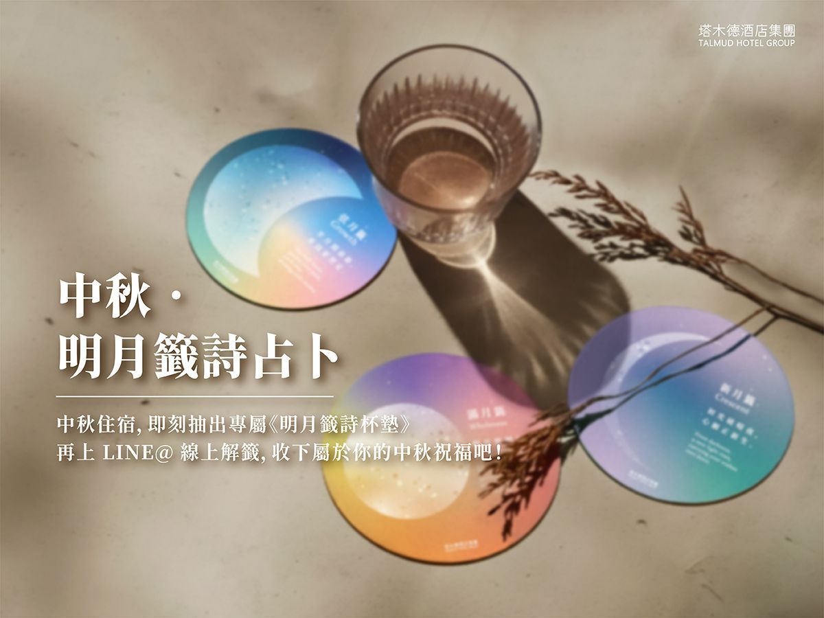 凡活動期間入住【塔木德酒店集團】旗下任一館店,邀請您一同參與「明月籤詩占卜」活動,即刻抽出專屬於你的《明月籤詩杯墊》。(共三款)