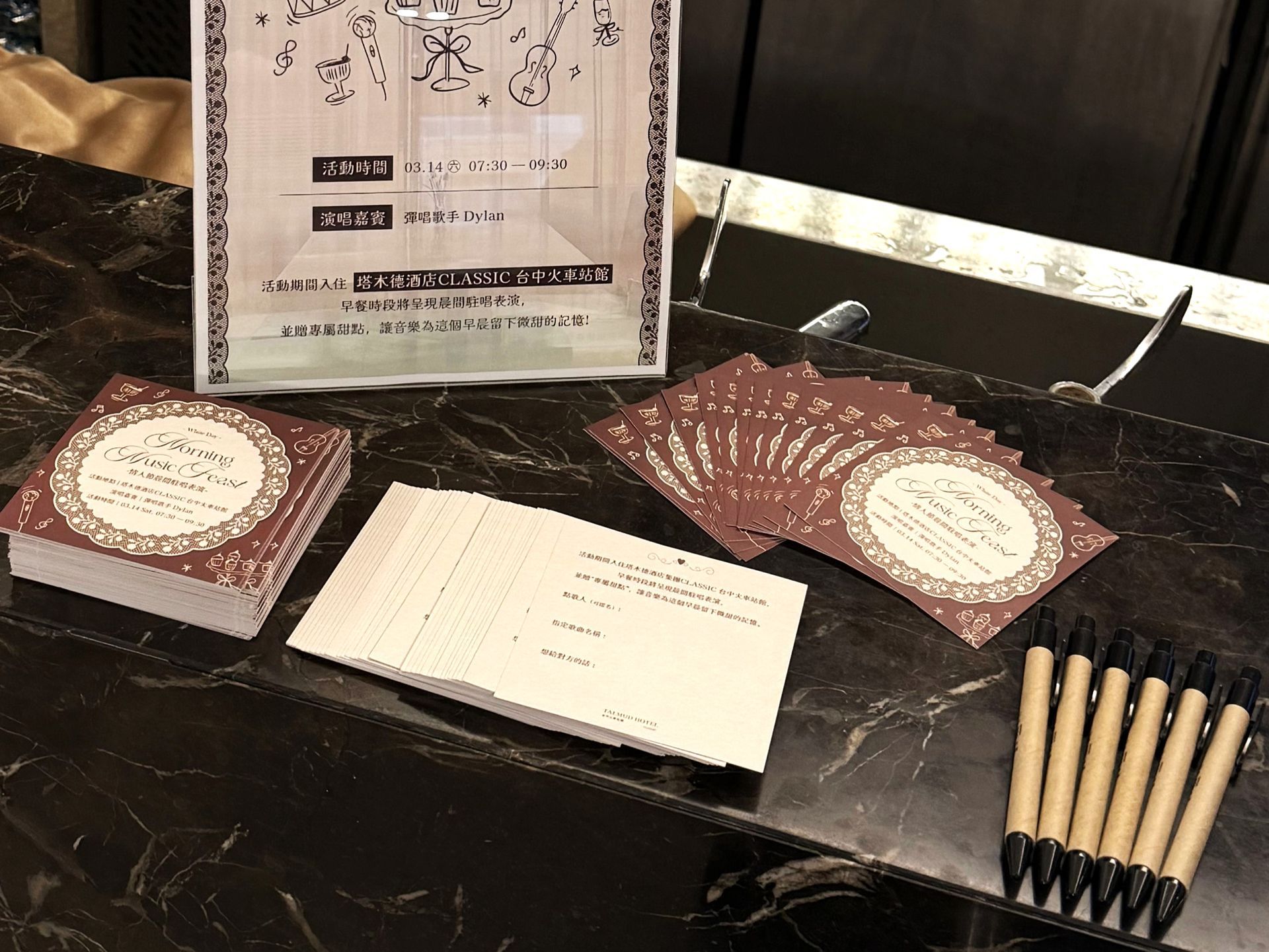 塔木德酒店集團始終致力於為旅人創造具備溫度與質感的住宿體驗,於 2026 年 3 月 14 日白色情人節當日,旗下「塔木德酒店CLASSIC 台中火車站館」特別策劃了《Morning Music Feast》晨間駐唱表演,將飯店早餐場域轉化為音樂沙龍,透過感官體驗的升級,實踐品牌對生活美學的追求。