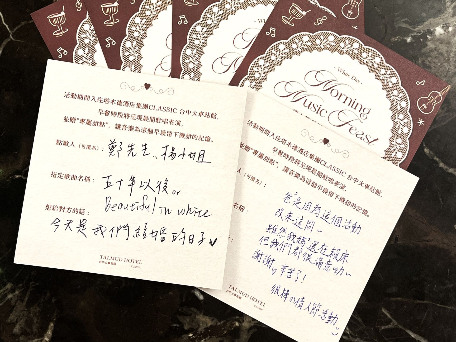 ▲ 《Morning Music Feast》一張張寫滿賓客心意與故事的點歌卡