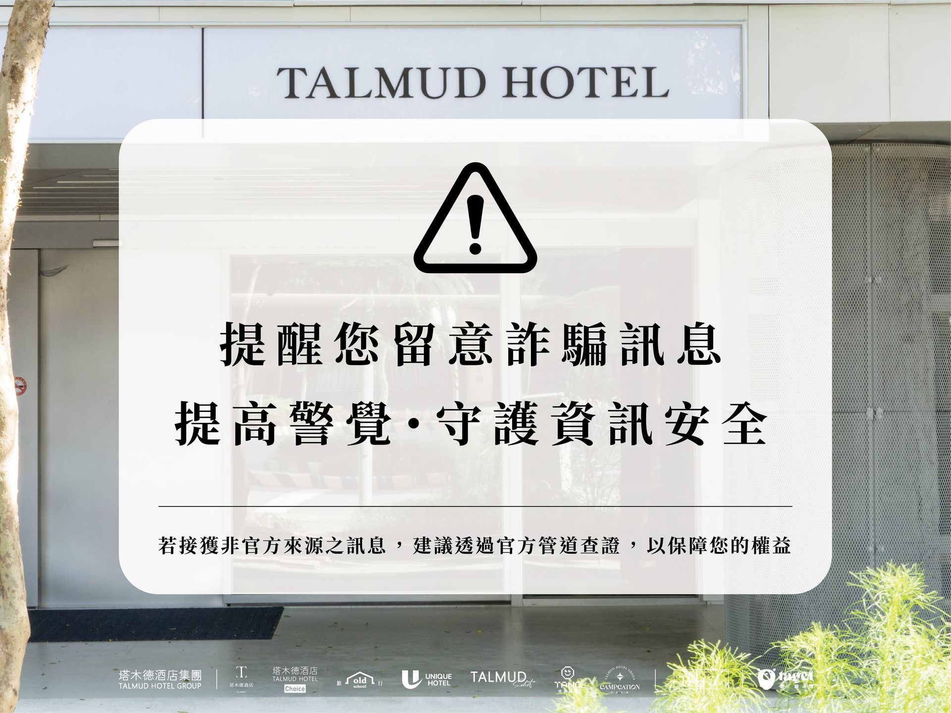 為保障您的權益與資訊安全,特此說明本飯店之官方聯繫原則如下:
